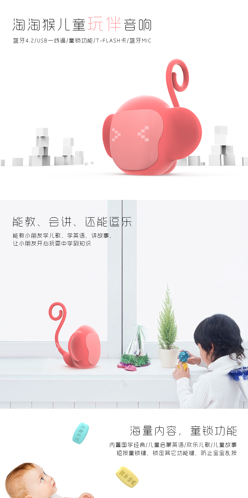 商品名称:【淘淘猴】智能儿童音响T101 USB蓝牙音箱 tf卡插卡音箱 童锁功能 儿童礼品送什么好 儿童节小礼品
