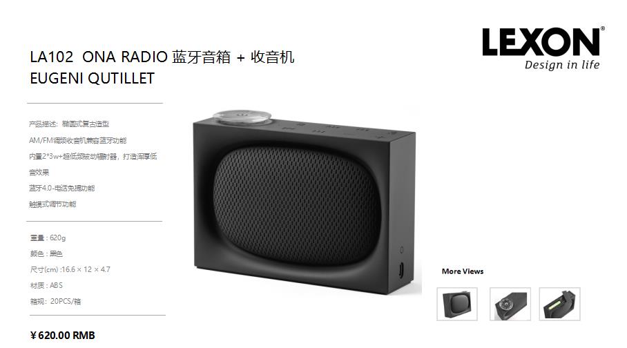 商品名称:法国乐上(LEXON)EUGENI QUTILLET ONA RADIO 椭圆式复古 蓝牙音箱 + 收音机