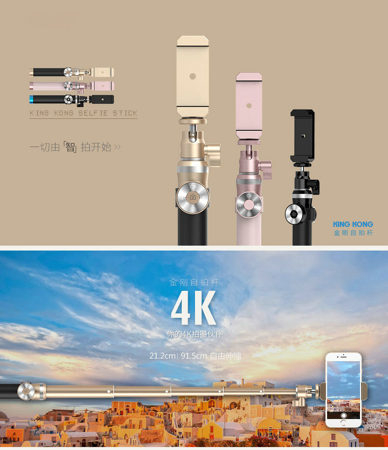 商品名称:唯美创意铝合金蓝牙自拍杆 三脚架自拍神器 高档礼品定制 精美礼品有哪些