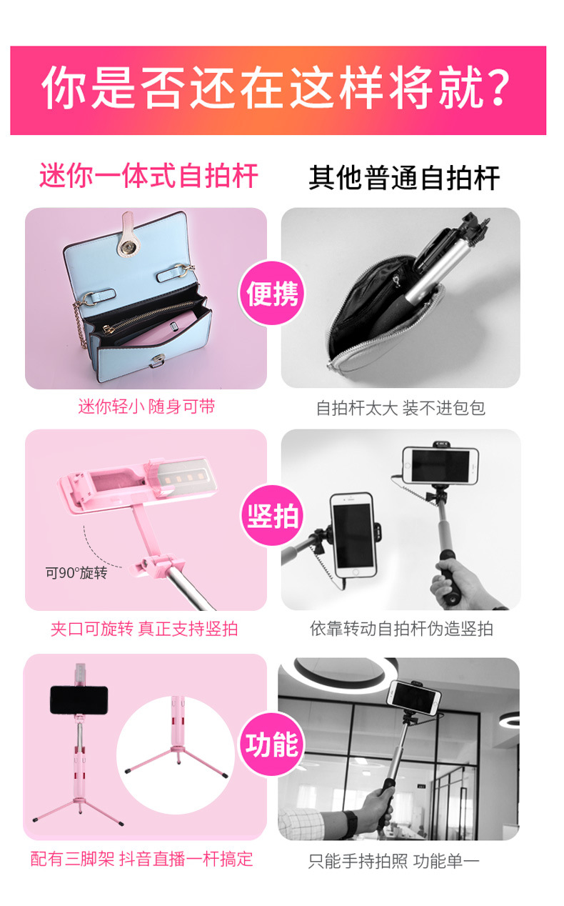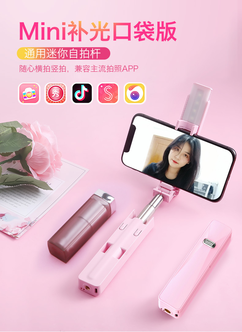 蓝牙补光版 迷你手机自拍杆美颜拍照神器 新颖小礼品 50元的礼品