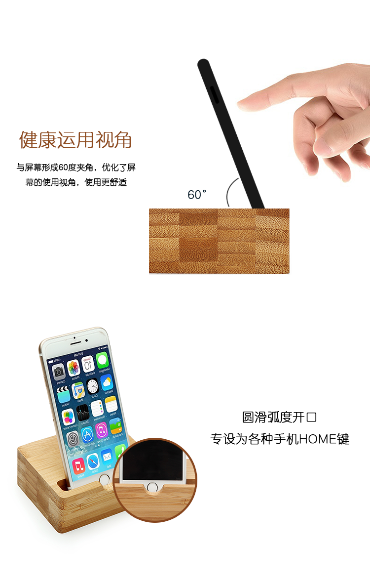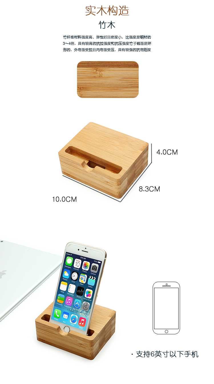 商品名称:竹子手机支架 创意竹木懒人手机座 办公桌面通用手机支架充电架 简约手机充电底座 礼品定制公司
