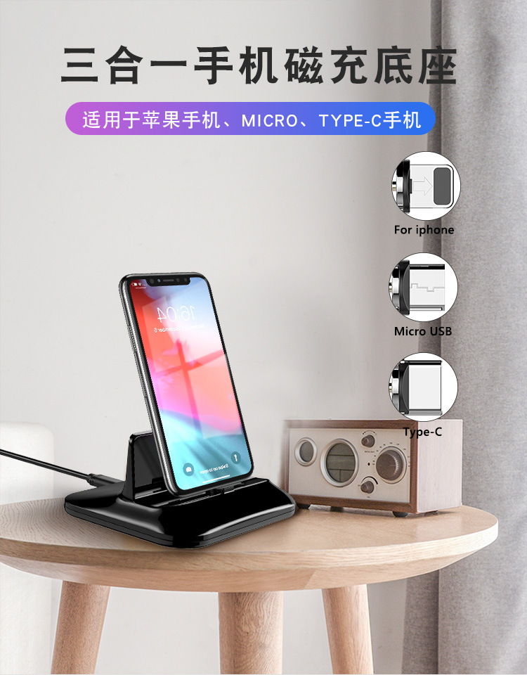 商品名称:磁吸支架充电底座 三合一无线充电器 手机支架 50元买什么奖品 促销宣传赠品