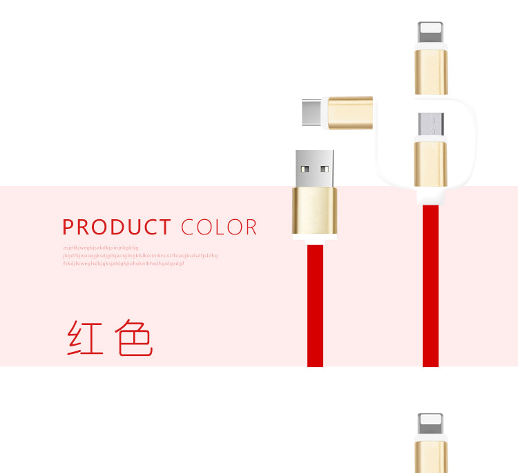 三合一土豪金数据线 安卓苹果type-c数据线 数码促销礼品