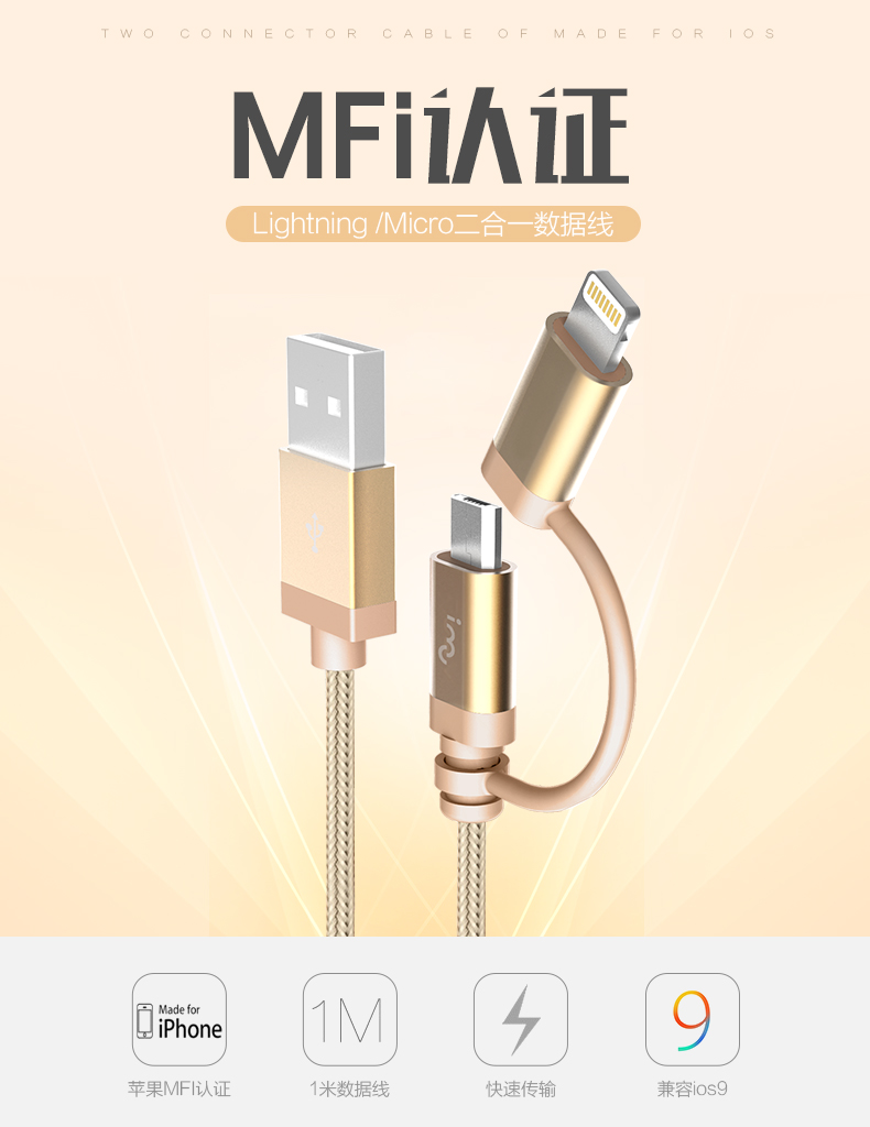 商品名称:幻响(i-mu)苹果MFI认证数据线充电线安卓usb手机ipad充电线 公司礼品推荐