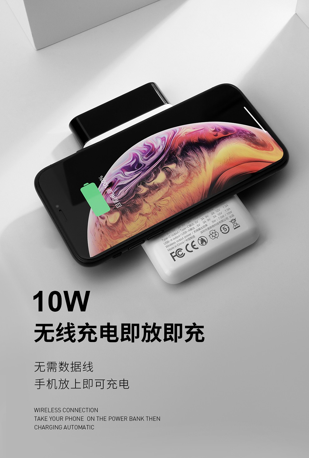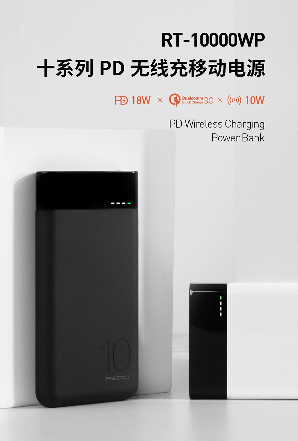 商品名称:Recci 高端十系列移动电源充电宝10000毫安 无线移动电源 创意生活产品