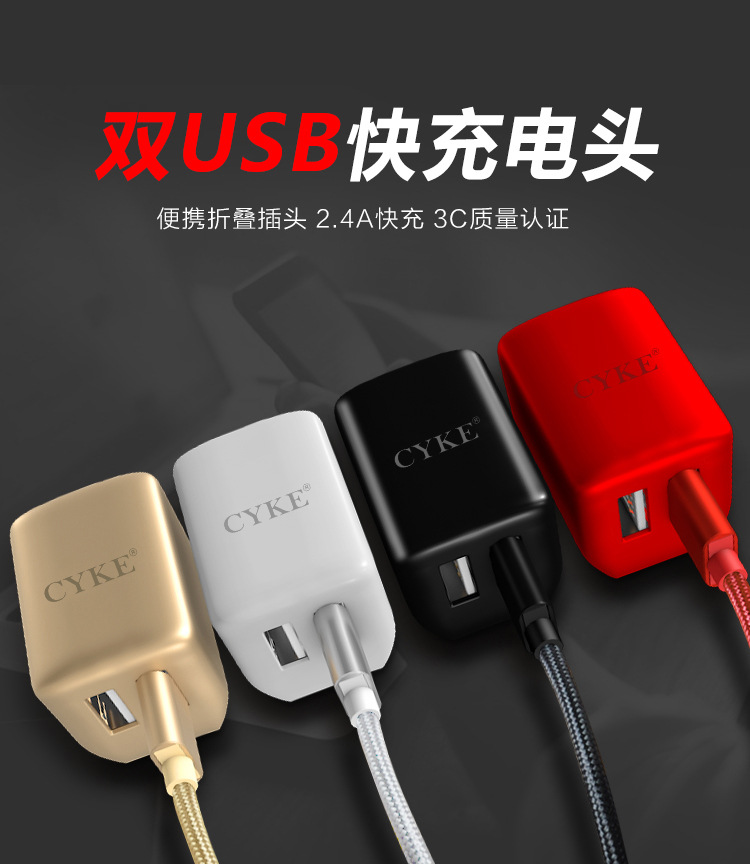 双口USB 手机充电器折叠脚 2.4A智能快充充电头分线器 活动小赠品