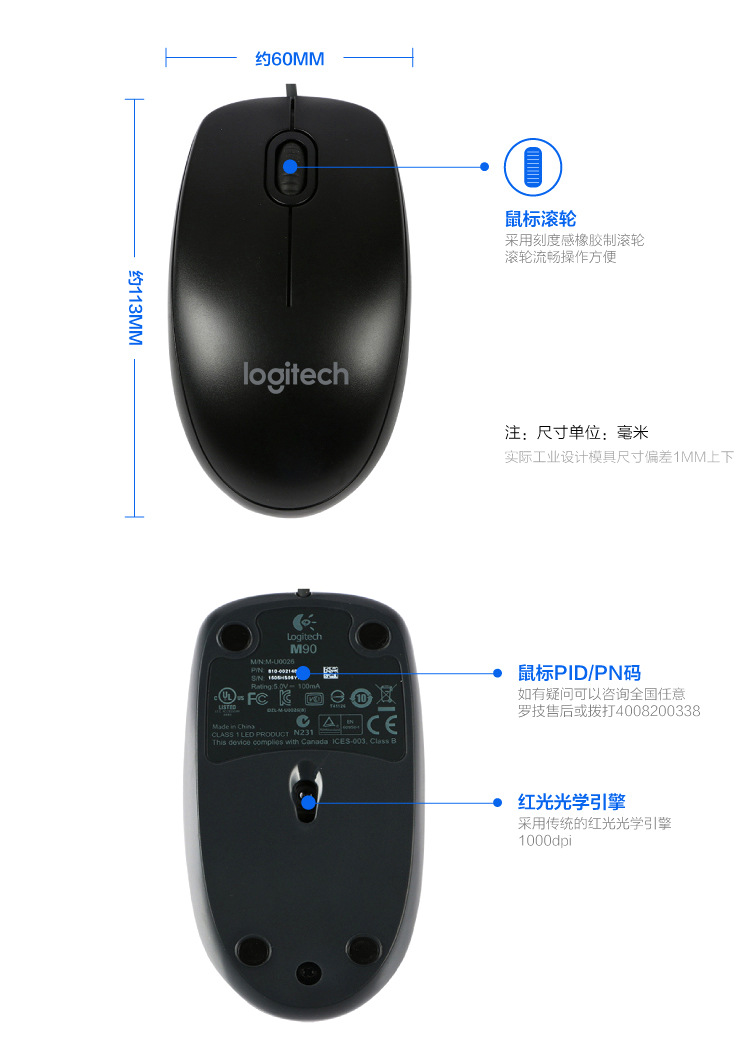 商品名称:Logitech/罗技 家用办公有线光学鼠标 青年人时尚小礼品