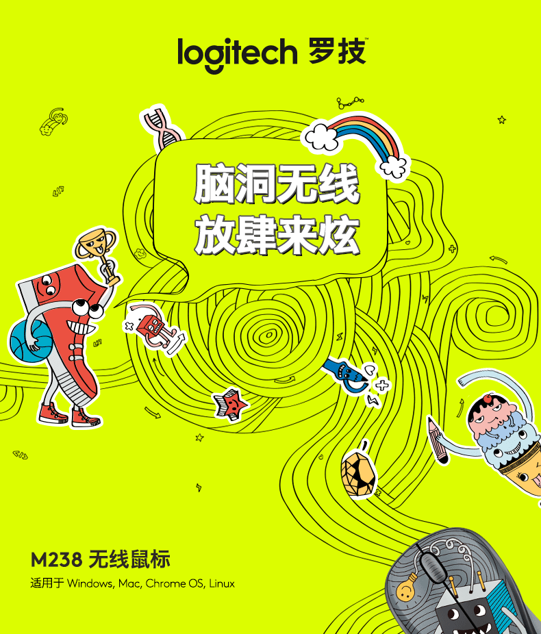 Logitech/罗技 滑板汉堡 彩绘涂鸦脑洞系列无线鼠标 大会送什么小礼品