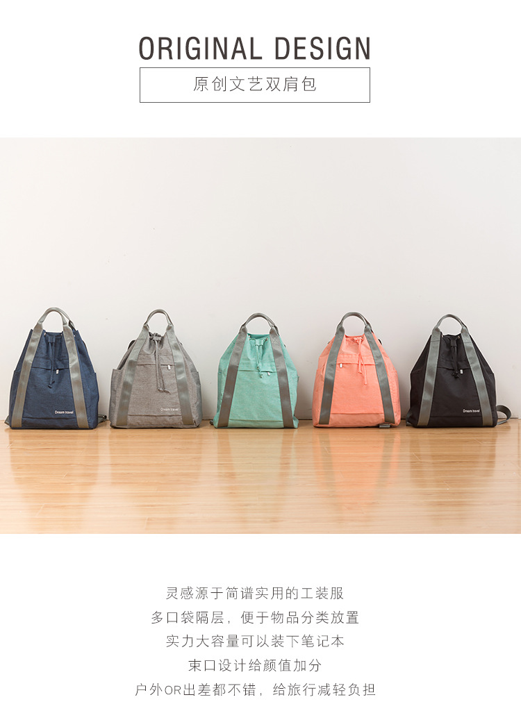 北欧文艺多功能收纳包 时尚简约手提双肩旅行背包 短途旅行包