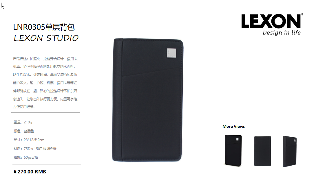 商品名称:法国乐上(LEXON)LEXON STUDIO 多功能简约护照夹 时尚手拿包