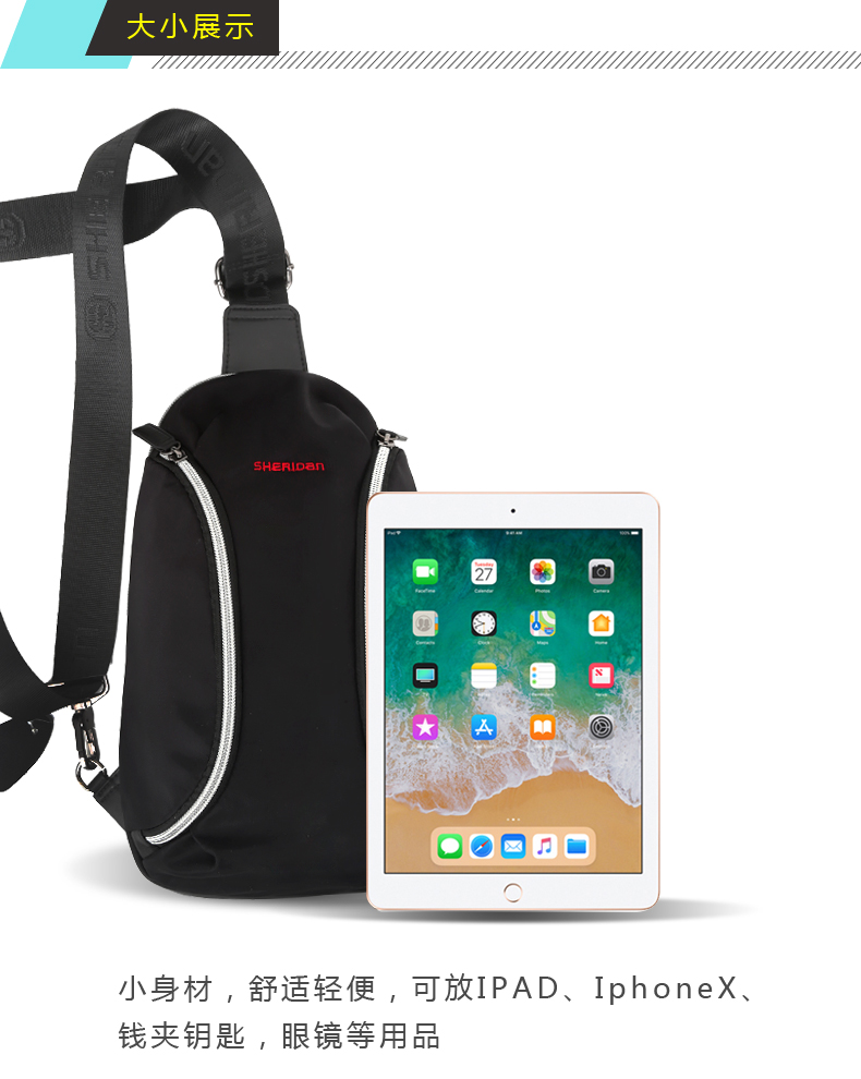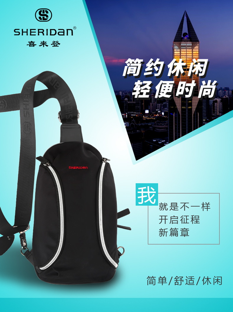 喜来登 简约休闲单肩胸包 防水耐磨尼龙布 收纳方便多种功能 公司活动奖品设置