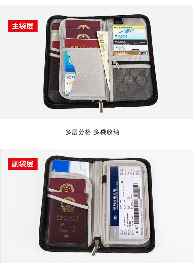 多功能旅行护照包防盗刷 可装现金硬币机票 防泼水面料 商务出行送什么礼物