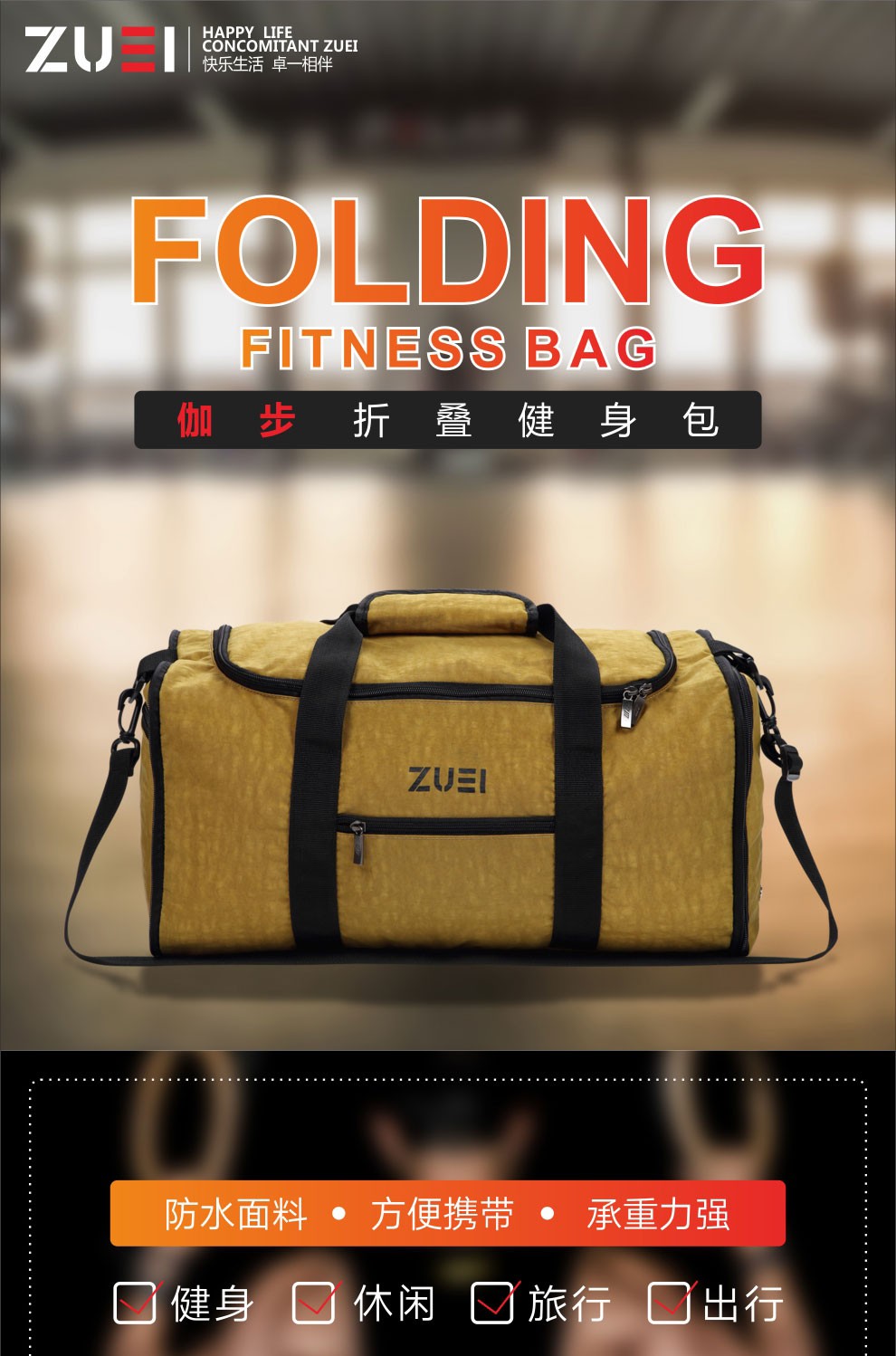 商品名称:ZUEI 折叠健身包 大容量方便携带旅游单肩包 旅游礼品定制