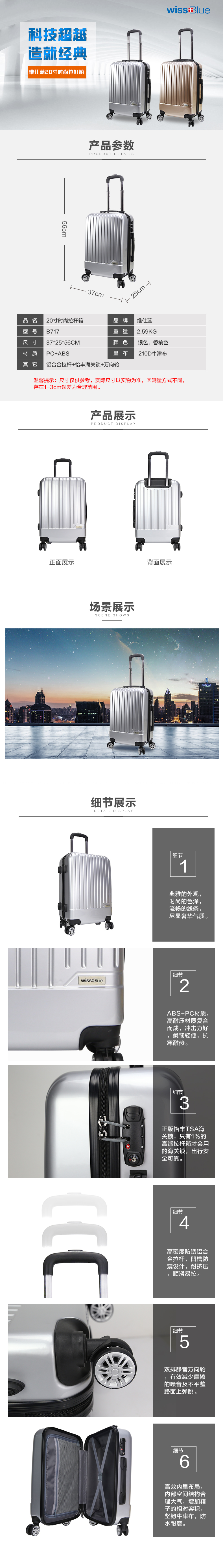 商品名称:维仕蓝(wissBlue)时尚拉杆箱20英寸银色 客户送礼送什么好