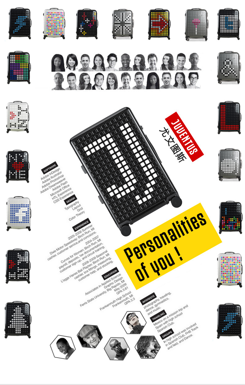 商品名称:智能行李箱尤文图斯 圆角方格图形创意万向轮 20寸登机男女旅行箱包24寸指纹锁拉杆箱 旅行礼品