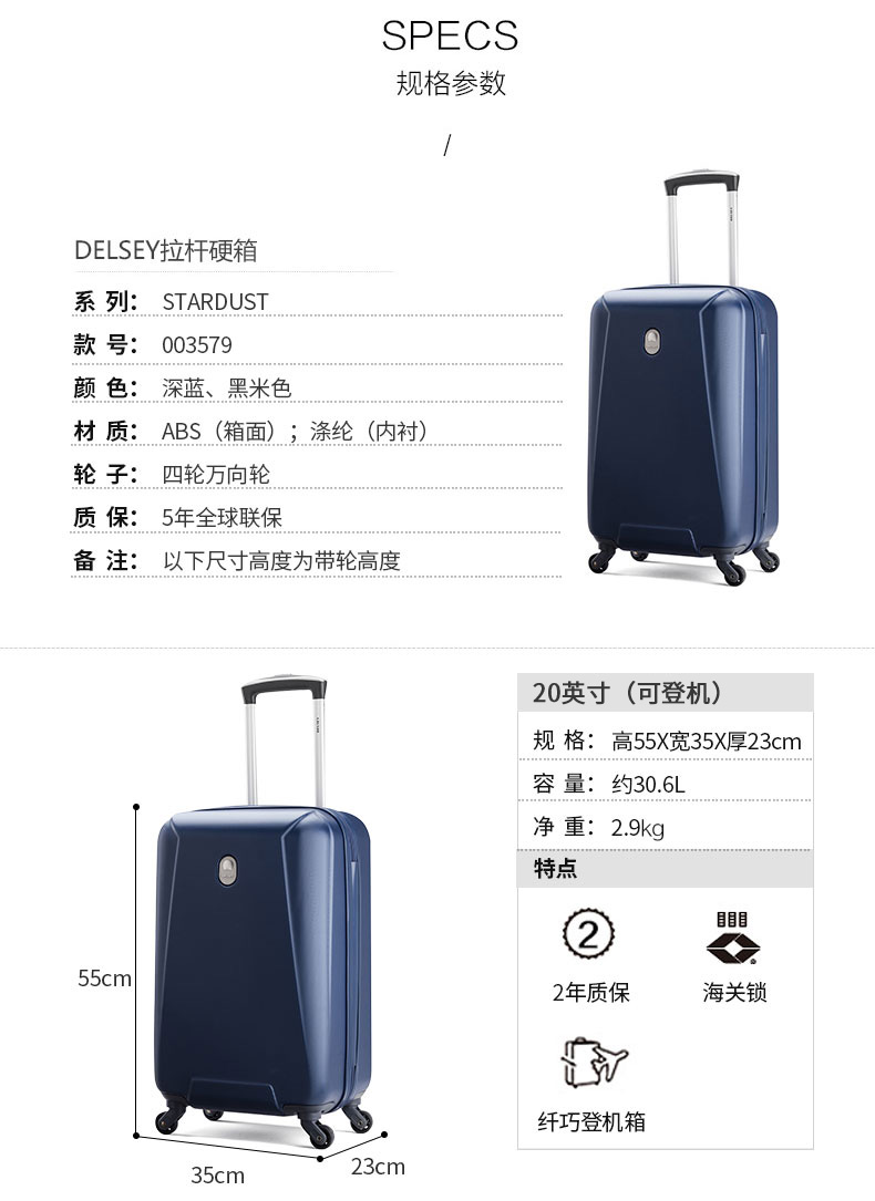 商品名称:DELSEY法国大使 菱形印花拉杆箱万向轮旅游行李箱 20寸登机箱密码箱 元宵节活动奖品