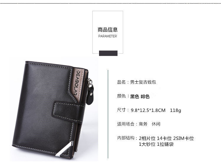 商品名称:欧美风范男士中长款钱包多功能多卡位三折皮夹 周年纪念品