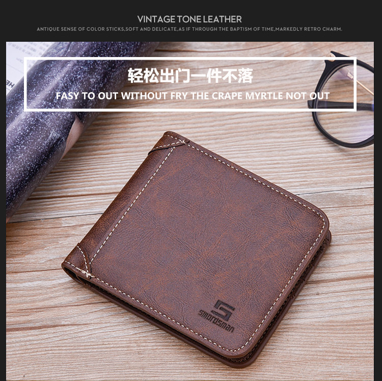 商品名称:复古三折男士短款钱包简约男式大容量软面皮钱夹 银行送客户什么礼品