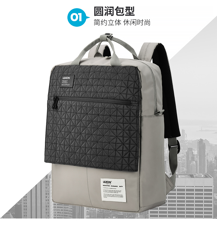 商品名称:法国乐上(LEXON)时尚休闲防泼水双肩背包 13.3/14寸电脑包 潮流男女背包 活动礼品