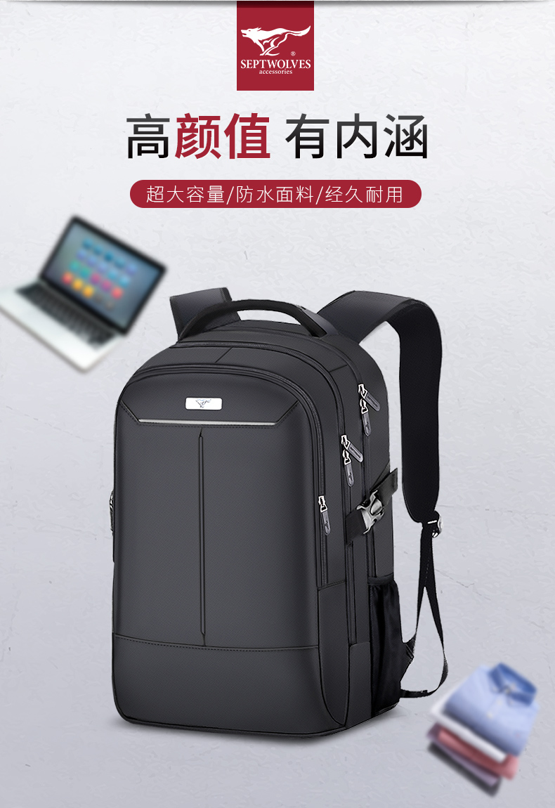 商品名称:七匹狼(Septwolves)时尚潮流双肩包 超大容量电脑包 创意商旅礼品