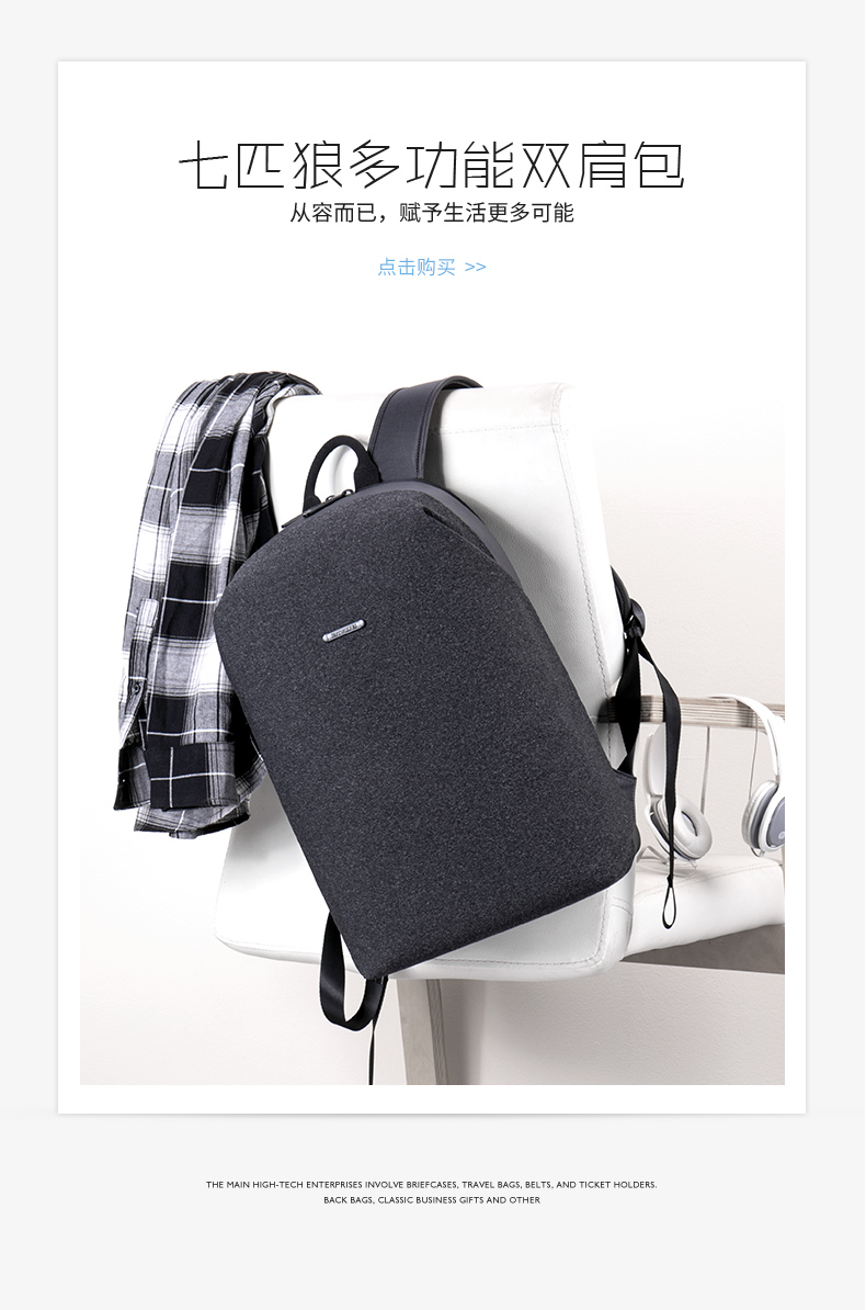 商品名称:七匹狼(Septwolves)黑灰拼接潮流双肩包 大容量防水电脑包 创意商旅礼品