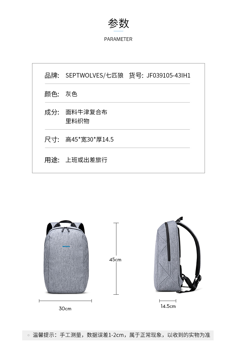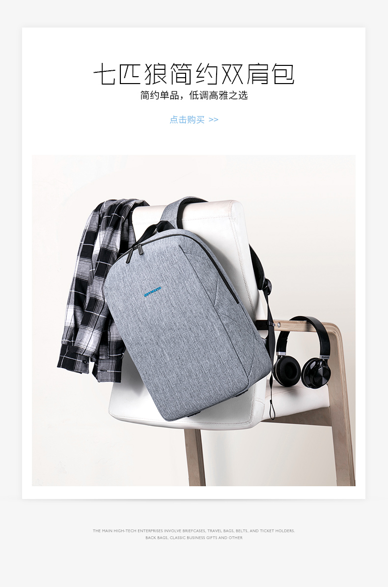 商品名称:七匹狼(Septwolves)多功能休闲双肩包 大容量电脑包 创意商务旅行礼品
