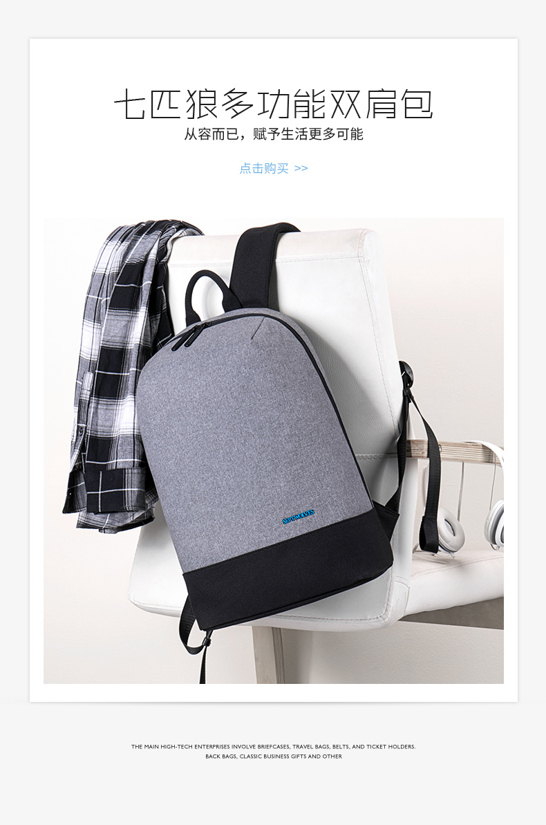 商品名称:七匹狼(Septwolves)黑灰拼接立体双肩包 多功能电脑包 商务旅行礼品