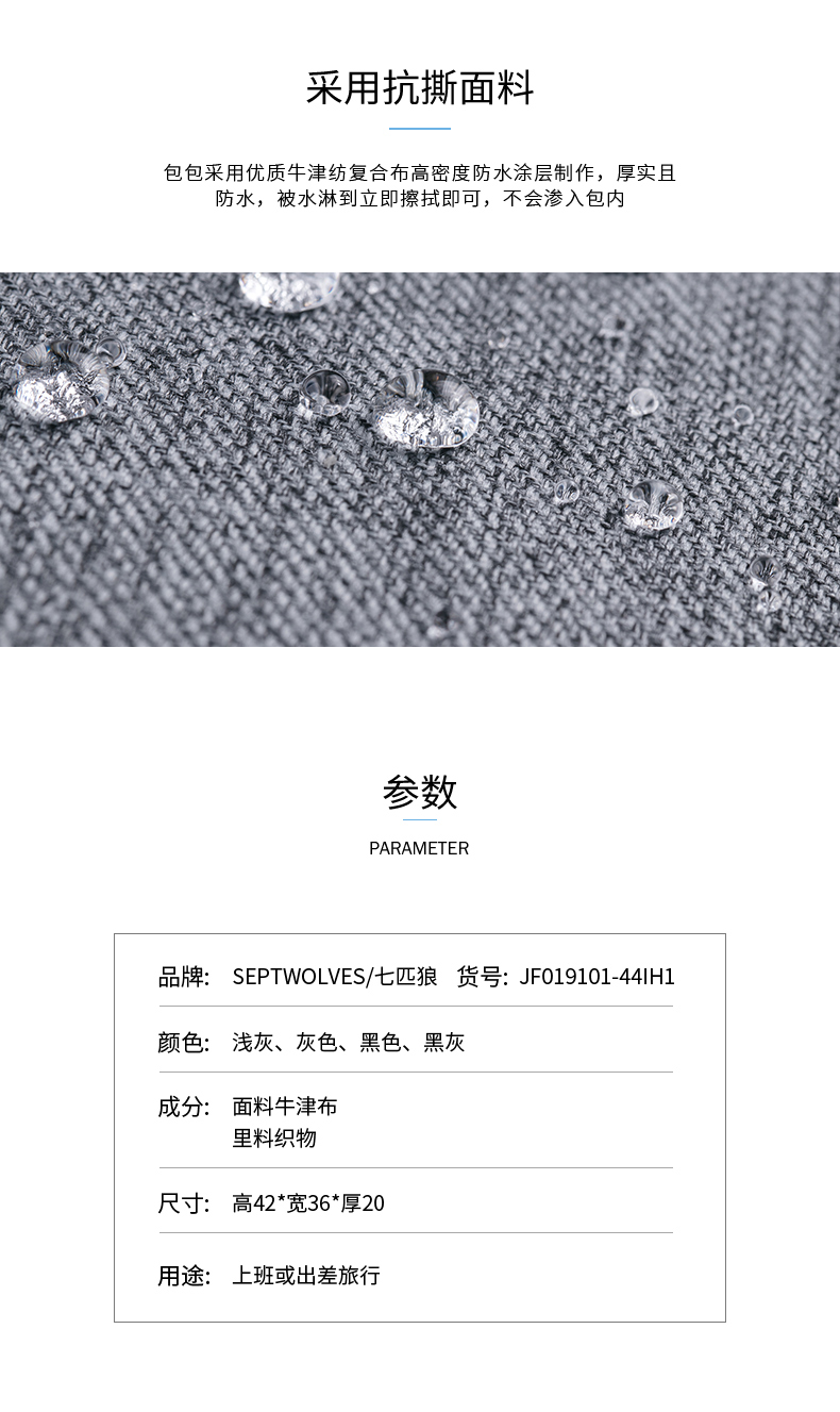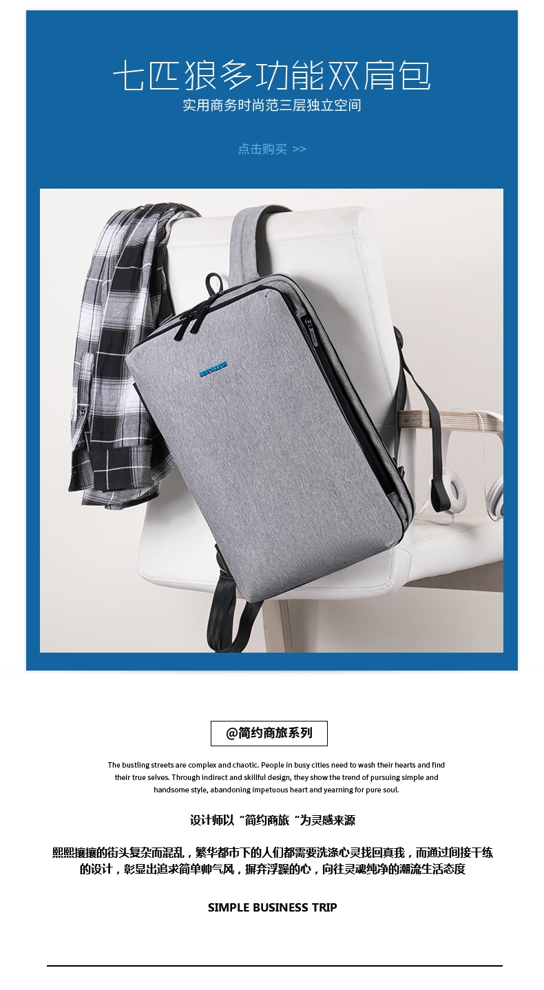 商品名称:七匹狼(Septwolves)多功能双肩包 简约商旅系列旅行包 年会 周年礼品