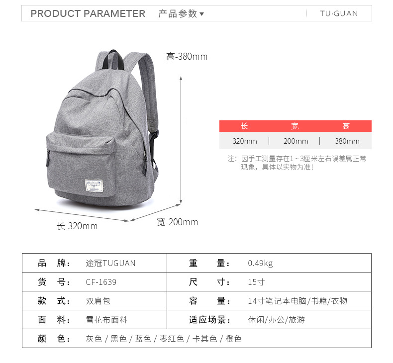 商品名称:背包男女双肩包 韩版潮休闲中学生书包 大学生电脑包 学生奖品买什么好 运动会比赛奖品
