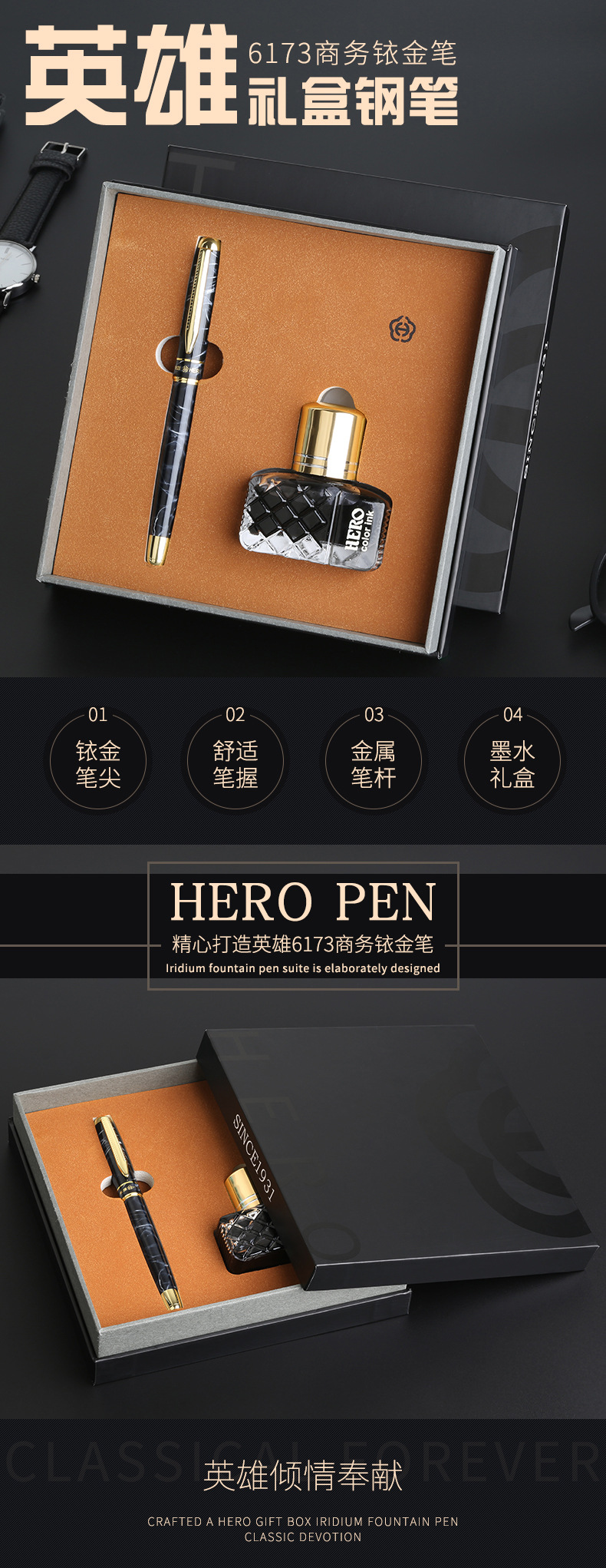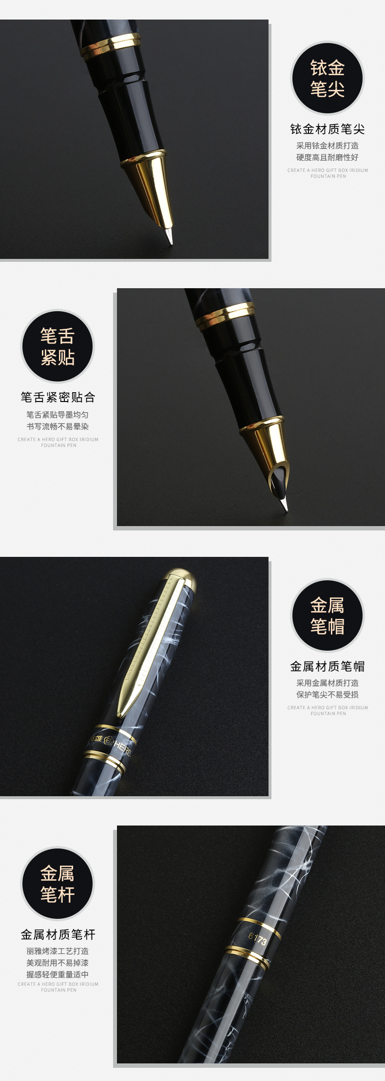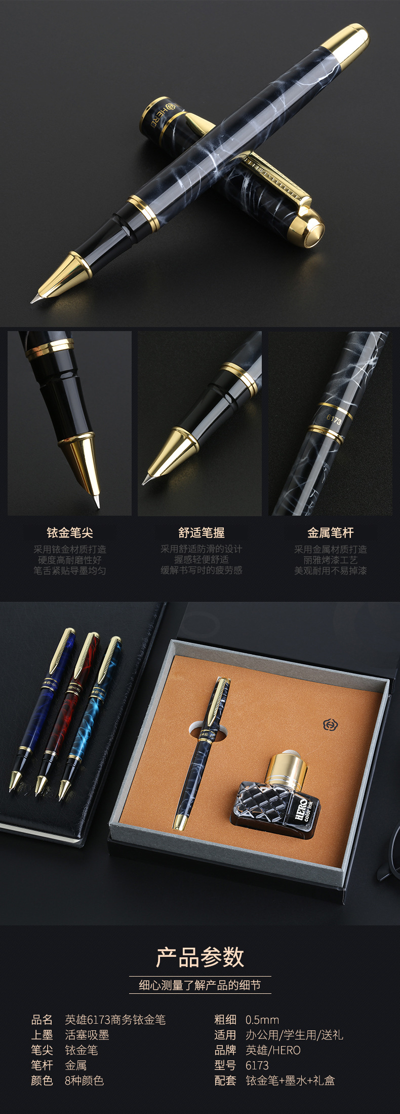 商品名称:英雄(Hero) 商务铱金笔 多彩8色活塞吸墨签字笔 创意会议年会礼品