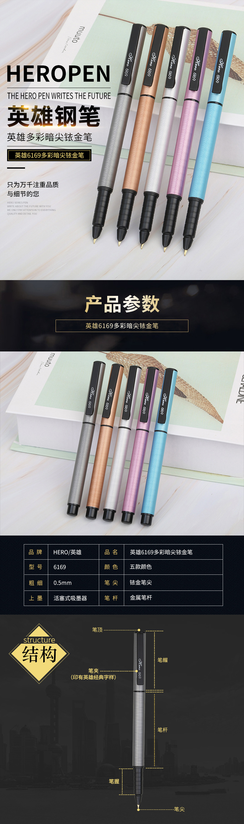 商品名称:英雄(Hero) 多彩暗尖铱金笔 简装练字金属笔 商务办公礼品
