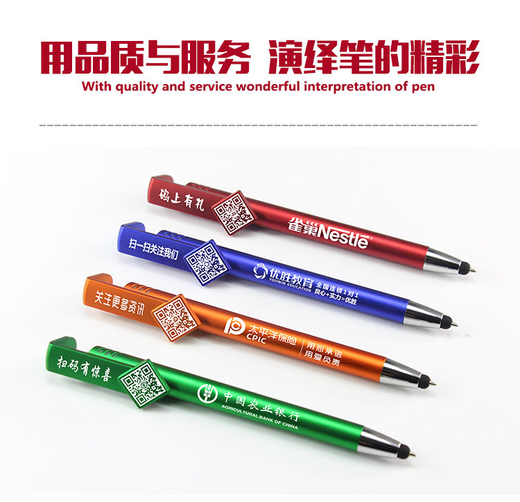 多功能手机支架广告圆珠笔 触控笔 可印二维码 广告促销礼品批发