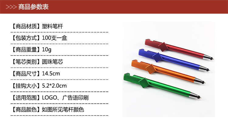 商品名称:多功能手机支架广告圆珠笔 触控笔 可印二维码 广告促销礼品批发