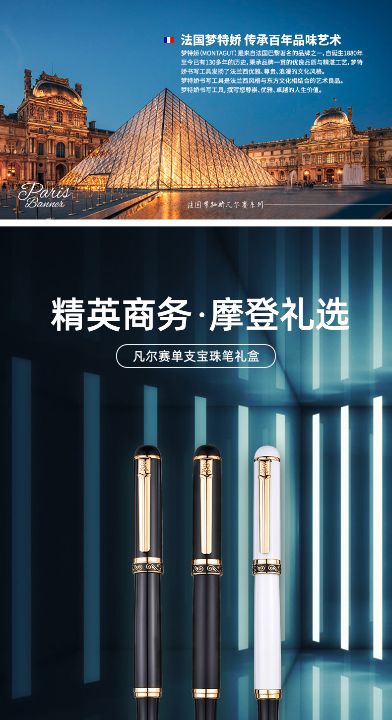 商品名称:MONTAGUT 凡尔赛金夹宝珠笔 书写大气随身携带签字笔 商务礼盒定制