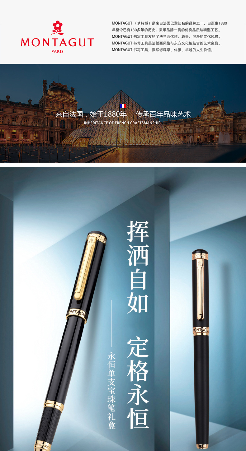 商品名称:MONTAGUT 永恒单只宝珠笔金属笔礼盒装 签字笔可定制名字 精美商务礼品