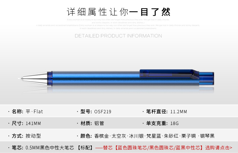 商品名称:【Flat】按压型商务中性笔(219) 金属签字笔定制