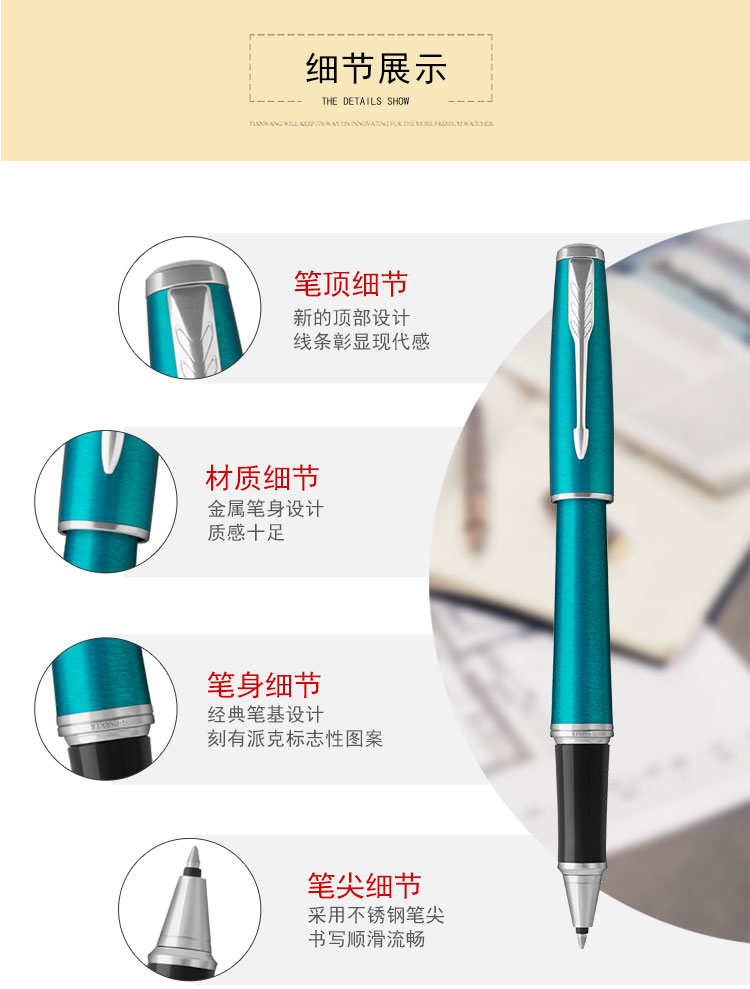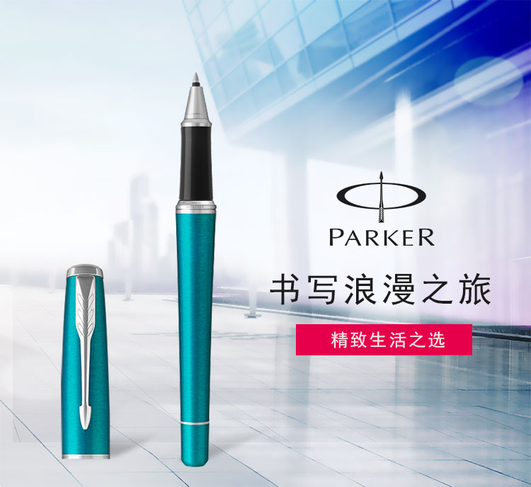 派克PARKER 经典都市孔雀蓝白夹宝珠笔 中性商务签字笔