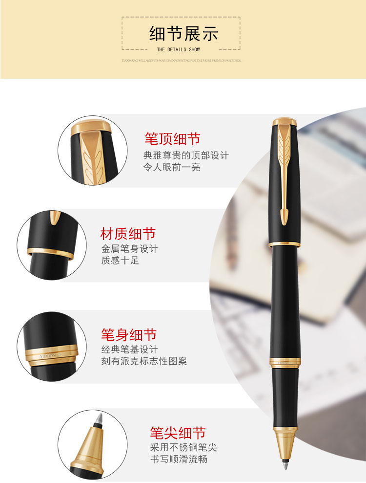 商品名称:派克PARKER 新版都市磨砂黑杆金夹宝珠笔 商务签字笔