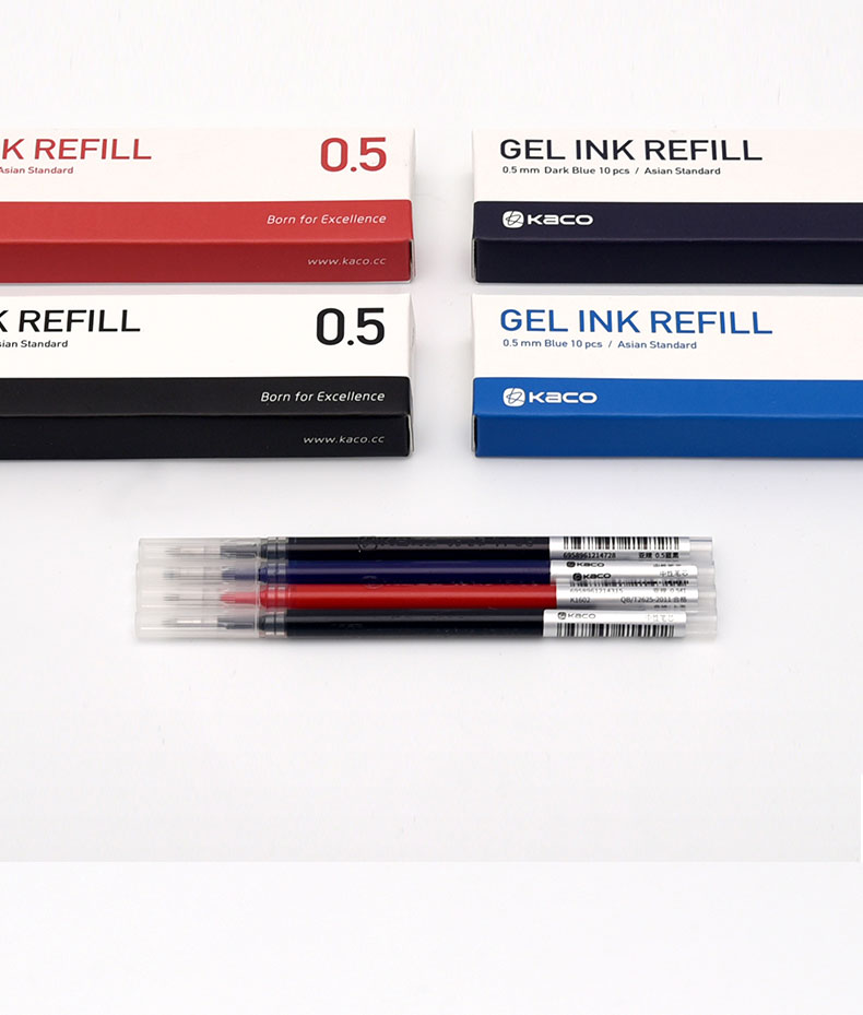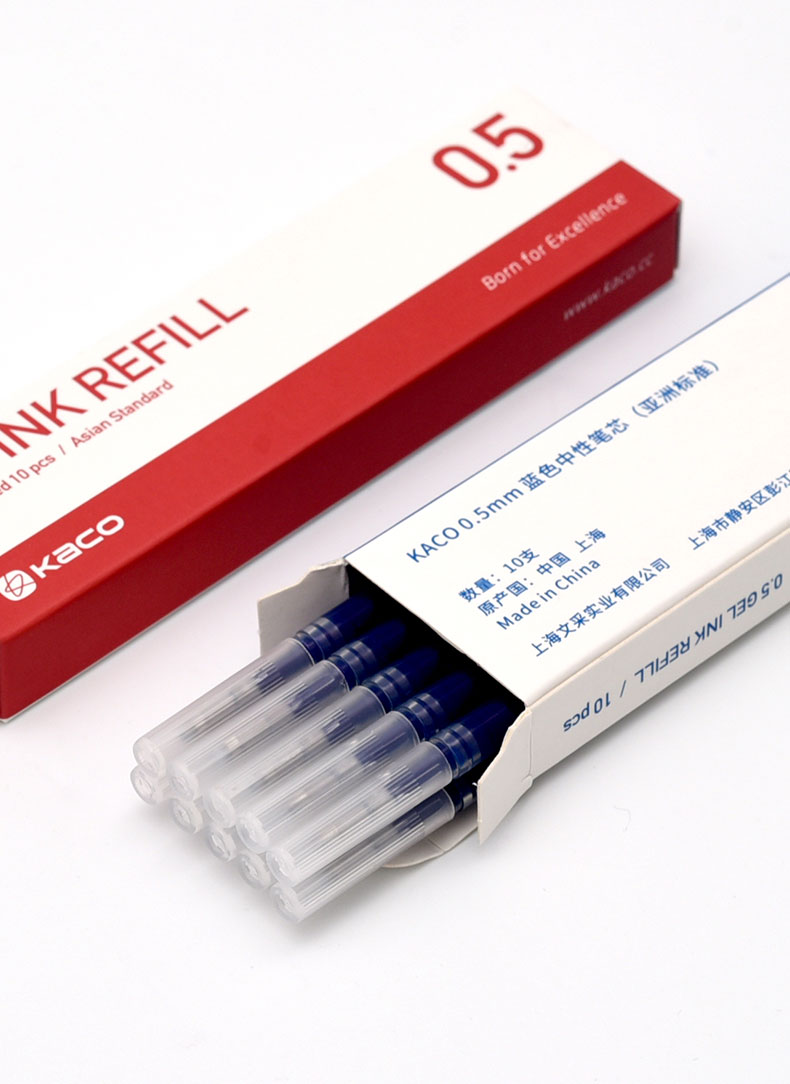 kaco 亚规0.5中性笔芯 10支装签字笔替芯 黑色/蓝色/红色/蓝黑色可选