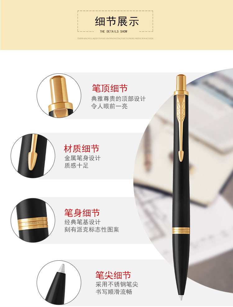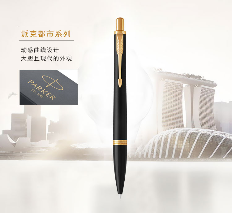 商品名称:派克PARKER 新版都市磨砂黑杆金夹原子笔 商务圆珠笔
