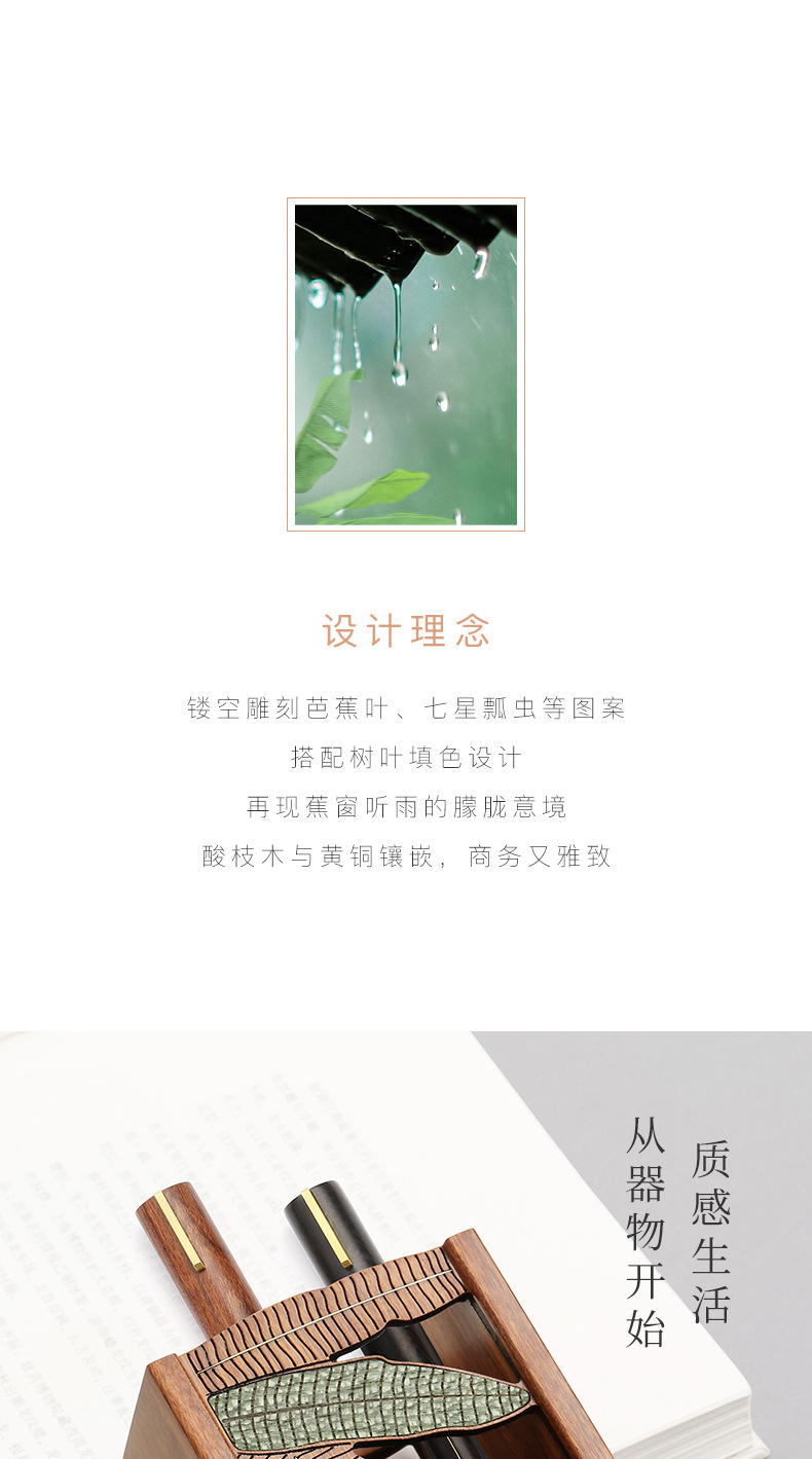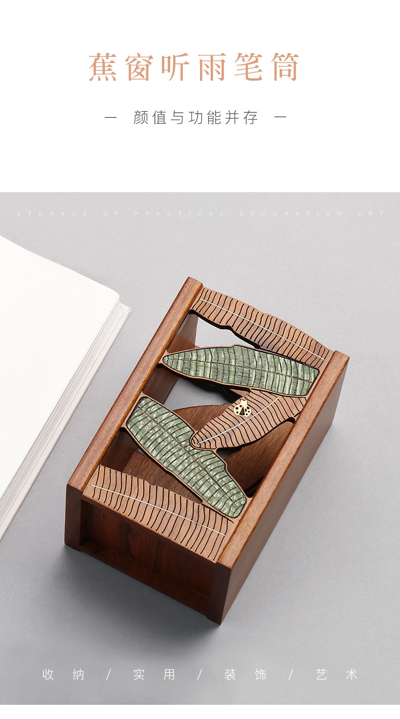 蕉窗听雨笔筒 创意简约 办公桌小摆件