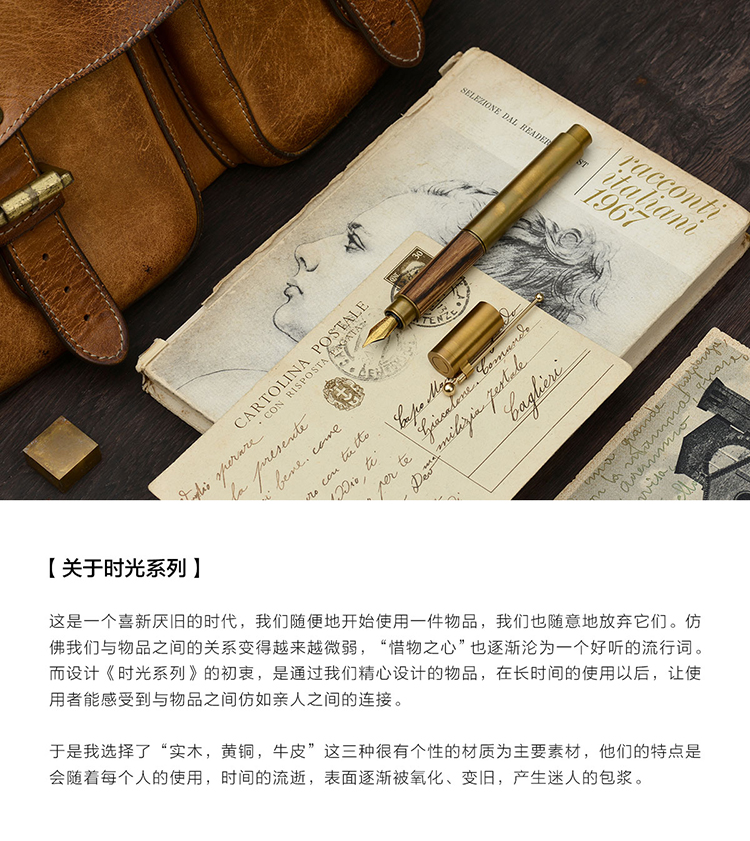 【时光字母版钢笔】黄铜实木配笔套装 创意定制 纪念礼品