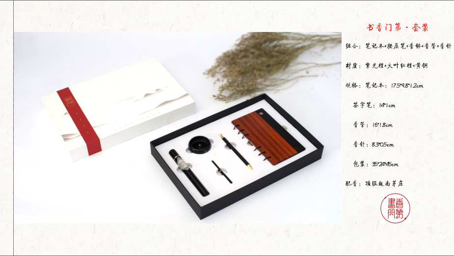 【书香门第】笔记本+按压笔+香钵套装 商务礼盒