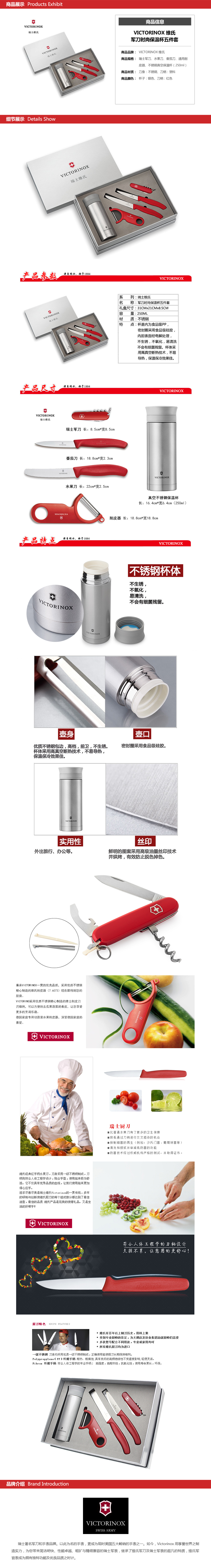 商品名称:瑞士维氏 Victorinox 瑞士军刀+水果刀+番茄刀+刨皮器+真空保温杯五件套礼盒套装