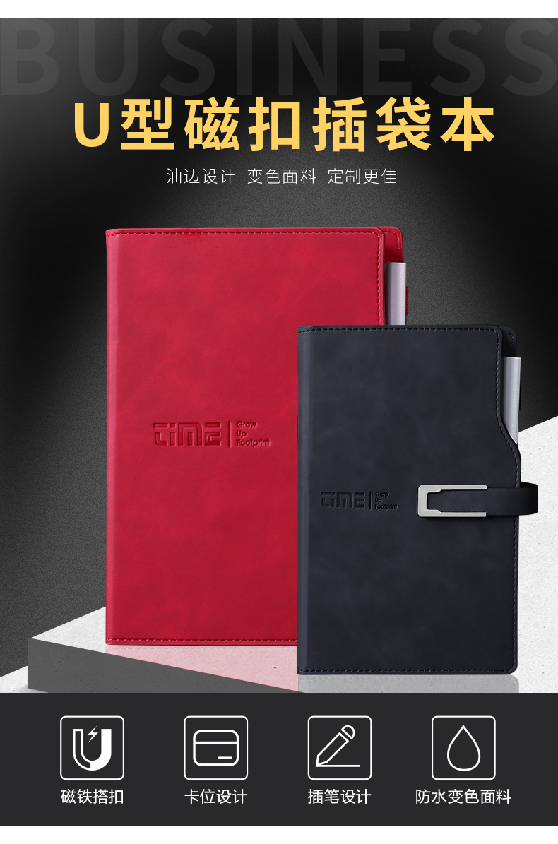 商品名称:【礼盒装】U型磁扣插袋笔记本 A5变色PU笔记本签字笔两件套 商务礼品定制