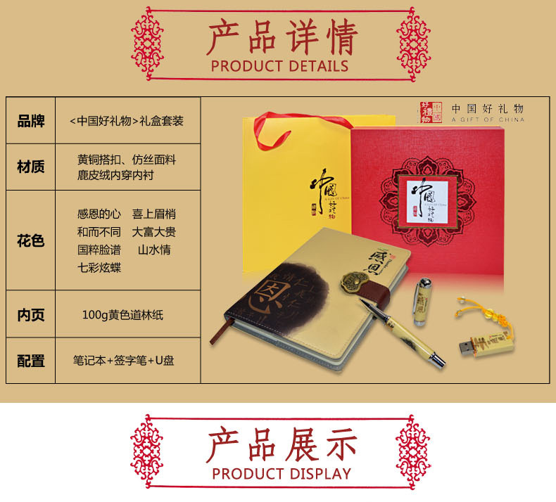 商品名称:中国好礼物系列 中国风丝绸笔记本三件套礼盒 创意年会礼品
