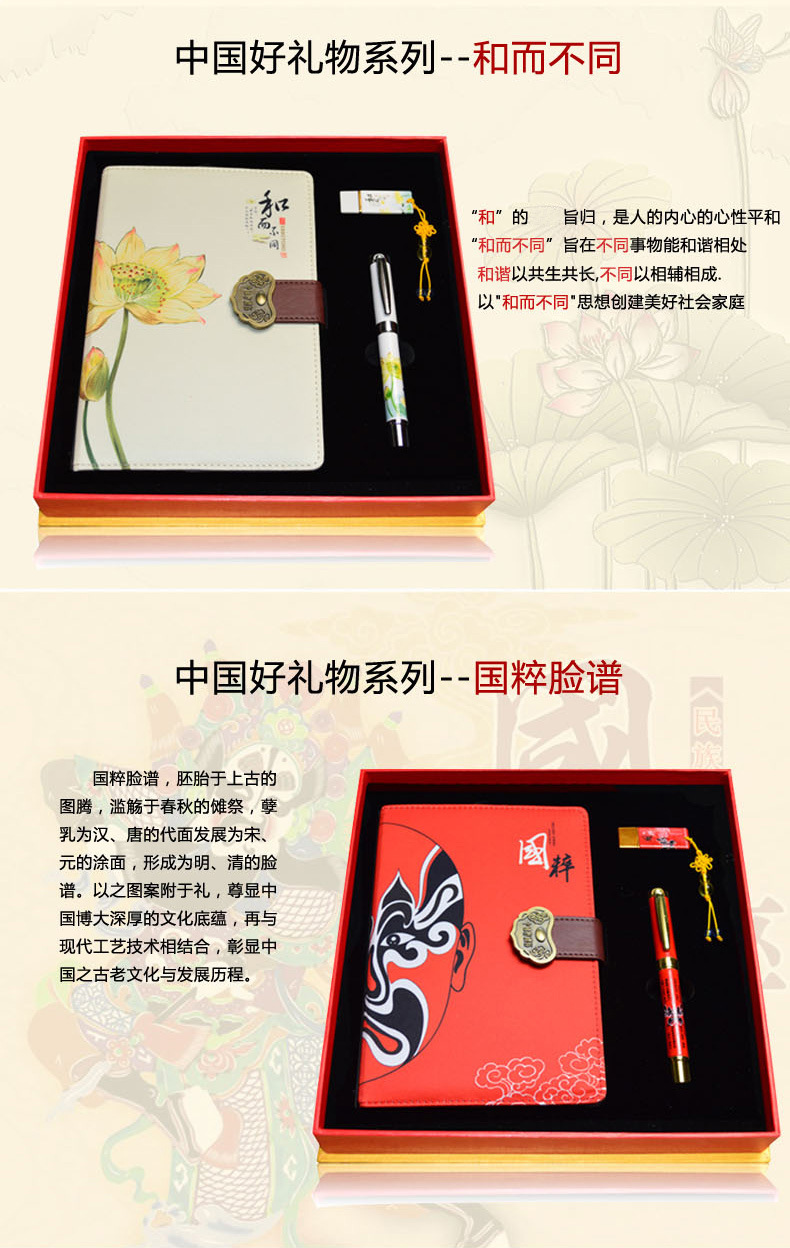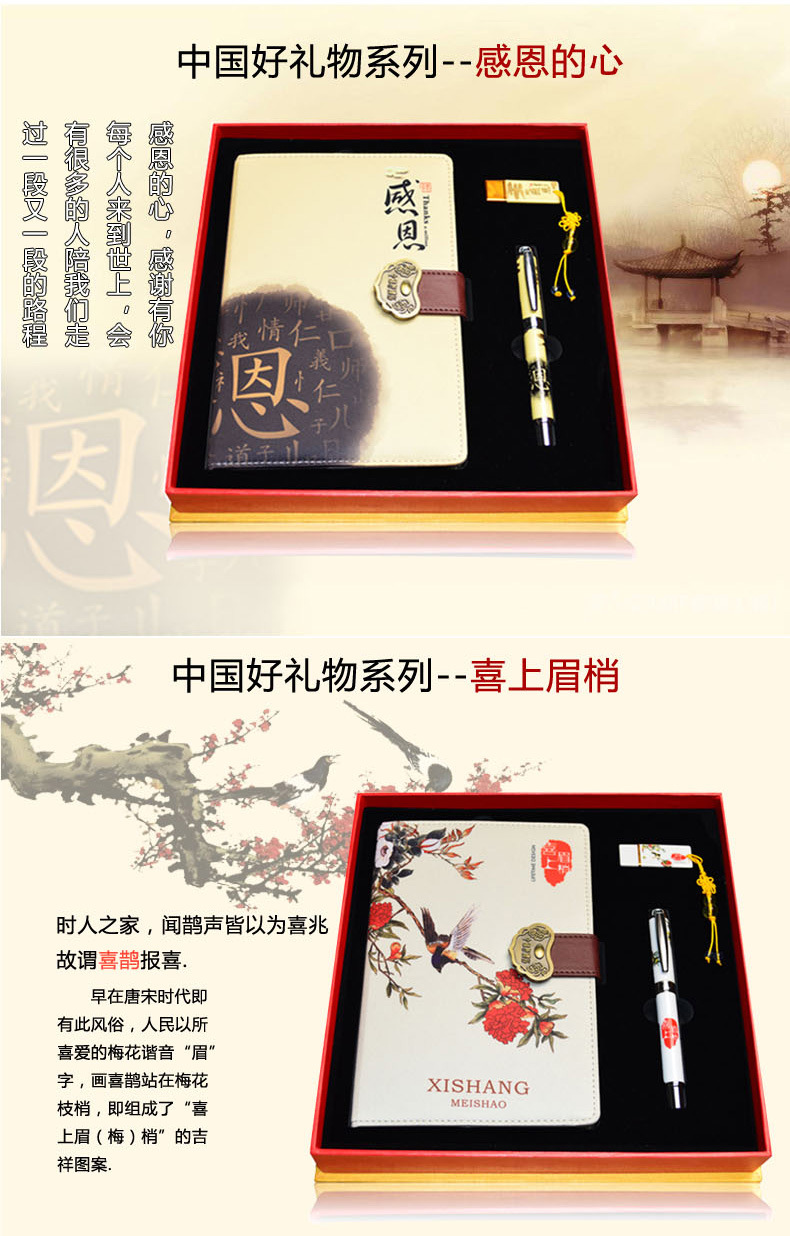 中国好礼物系列 中国风丝绸笔记本三件套礼盒 创意年会礼品
