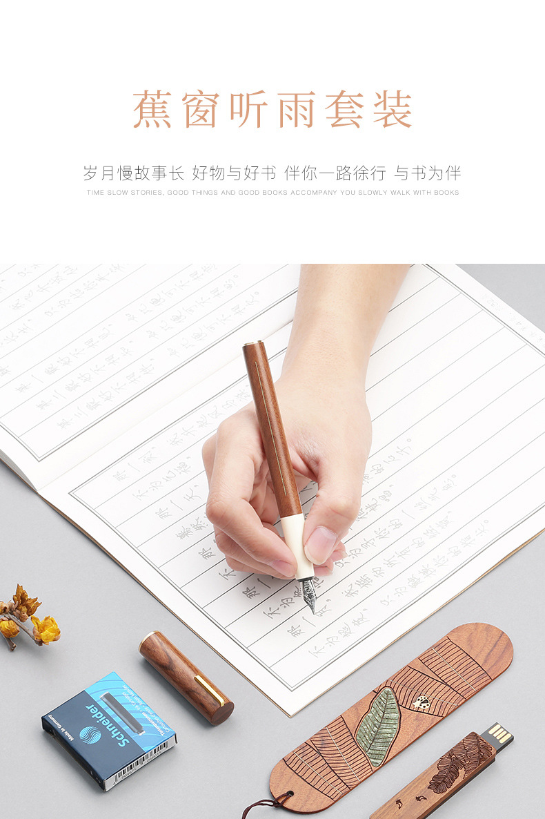 商品名称:蕉窗听雨套装 钢笔+书签+U盘 实用的活动礼品