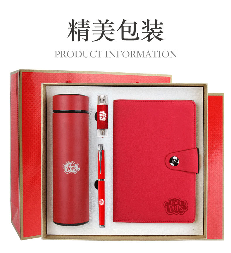 商品名称:450ml保温杯+A5搭扣笔记本+两用手机U盘+签字笔套装 商务礼品四件套 年会礼品定制