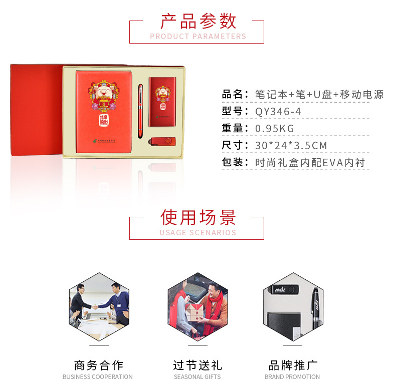 商品名称:“猪”事顺利商务礼盒 笔记本U盘笔充电宝套装 年会 开业 活动礼品